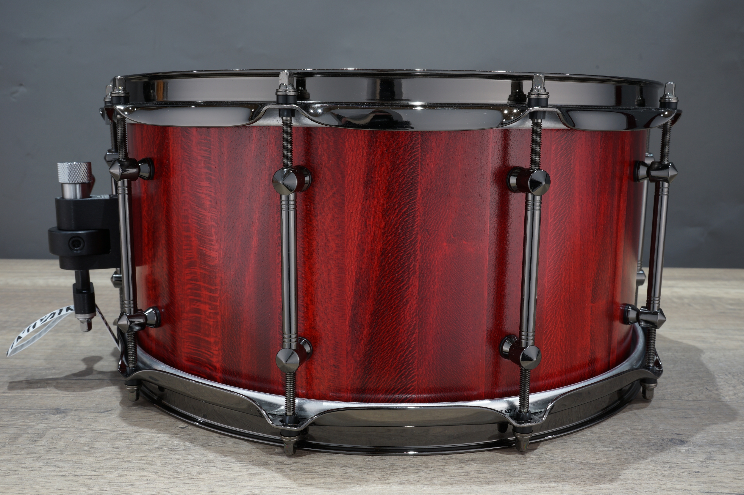 Hardware: Black nickel tube lugs and 2.3mm triple flanged hoops, Trick strainer and Zebra durable wires straps for extra sensitivity and durability. Fitted entirely with Thread Locks which prevent detuning while playing and also result in a very smooth tuning experience.